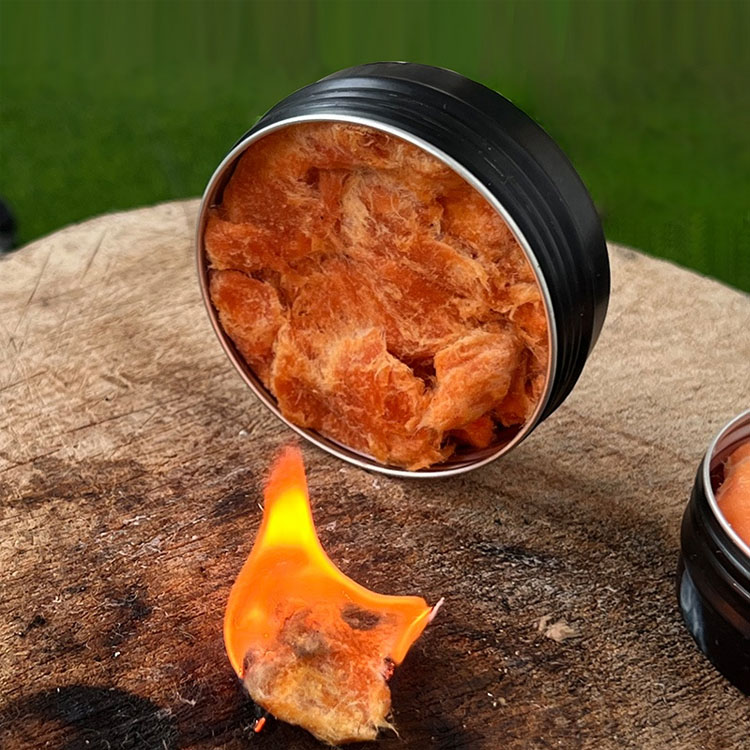Su geçirmez balmumu ve mineral bazlı ateş çamuru ile özel olarak formüle edilen bu kav, yağmura, kara veya yüksek neme maruz kaldığında bile hızlı tutuşmayı sağlayarak kritik hayatta kalma durumlarında güvenilir yangın başlatmayı sağlar.